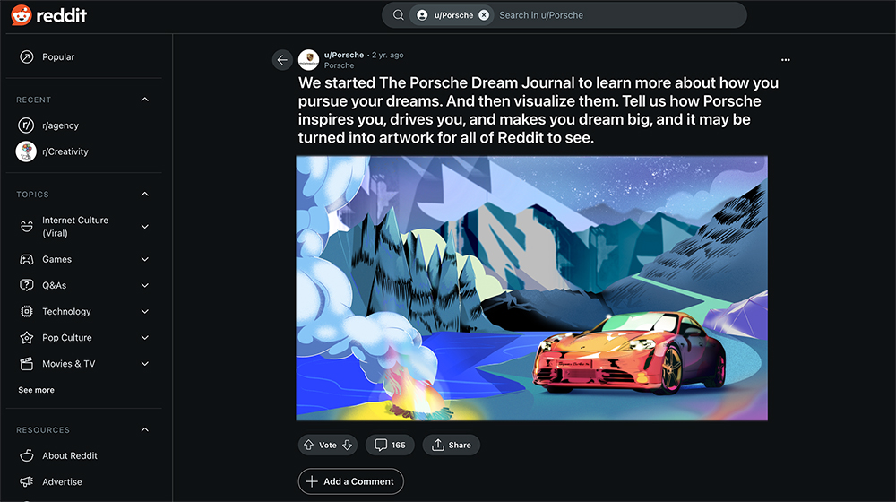 I had the pleasure of illustrating three Porsche enthusiast’s personal ‘Porsche dreams’ in response to a discussion prompt on Reddit. This project was part of a wider campaign to promote the new Porsche Taycan in 2023.